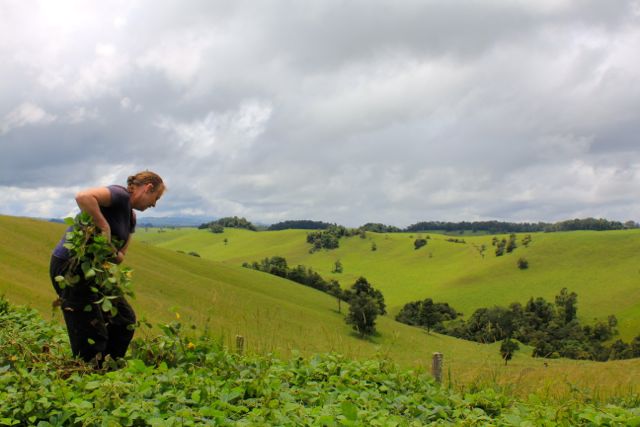 We were already sweltering in the far north QLD heat, but still had the biggest job of the day to endure. Cutting leaf! We went out into the countryside stopping by the roadside to collect some weeds, which Karen says they really like. We brought back bags of the stuff, traipsing through long grass cutting the freshest branches and leaves. I can’t say I was over enthusiastic when Karen warned us to watch for spiders in the privit. When we got back to the car, some large varieties of spiders came crawling out of the bag. She said it was just a part of the job she had learnt to accept. I couldn’t believe that this was a daily job for just one woman and I admired her dedication purely for leaf that will last just one day.